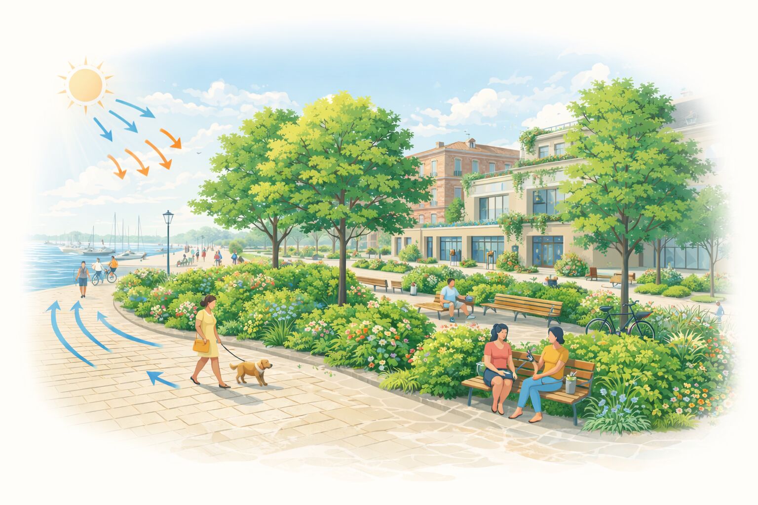 VégétalisationPlan de végétalisation des espaces communs (quai aux Vivres, esplanade Frot...) pour réduire les îlots de chaleur.